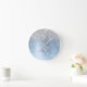 Easily personalize this trendy chic round clock design featuring pretty silver sparkling glitter on a blue brushed metallic background.