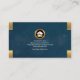 An elegant blue bubbles grunge cover accentuated by faux gold tabs at the card's corners. In the middle lies three gold plumbing icons. Above this is your prestigious name. Directly below the gold icons are your job title and phone contact.