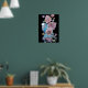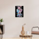 Blue Budgie Red Rose Black Watercolour art Poster