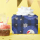 Trendy, blue plaid and snowflakes Christmas photo wrapping paper. Festive blue ornaments frame your personal photo against trendy, lumberjack buffalo plaid in black and blue. Scattered, glitter look snowflakes. Reads 'Merry Christmas' in modern, white curved letters at the bottom of the ornament frame. Option to change text style, colour, and/or add your own message, or delete. Unique holiday wrapping paper ready to customize with your holiday picture. Browse other personalized gift wrap designs in our online Zazzle.com/angela65* store, including coordinating, rustic lumberjack plaid photo gift wrap.