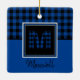 Blue Buffalo Plaid and Black Monogram and Name Ceramic Ornament