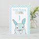 Cute blue boy's 1st birthday party invitation with blue bunny rabbit design let's your guests know that some bunny is turning one! All the first birthday party details can be easily customized on the back of baby boy 1st birthday invitation.