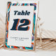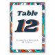 Blue Burnt Orange Wavy Modern Retro Groovy Wedding Table Number