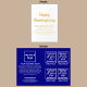 Happy Thanksgiving! A holiday to celebrate and to thank for the blessings that we received. It is also one of the holidays to advertise your business or to promote your brand name to customers or clients. Customizable foil card that you can put your business brand, your products or services and with Thanksgiving greeting. You can put up to 4 products. Customize it and use it as marketing material to advertise your brand name and to promote your business products or services. Foil card that you can use to build brand name awareness. Design colours are gold foil texts on front side and in the inside are light blue and white texts on blue background. To customize this foil card, upload your business logo, images of your products or services, type your business name, short attractive description of your business and products or services, names of your products or services, address, phone number, e-mail and website or your business social media page. Please check the appearance on all sides after uploading logo, images and typing texts. If the appearance is pleasing to you, you can place your order now. If you need to resize and move the logo, images and texts to fit on this card, please change in the design tool. You can also make other changes according to the appearance of this card that you prefer in the design tool such as changing the background colour, font colour and font style. Happy Thanksgiving! Wishing you more sales this holiday.