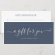 Simple and elegant minimalist blue and white gift certificate. This elegant script Gift certificate fits perfectly within a standard #10 business envelope. Perfect for your brand and business.