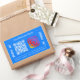 A light, bright blue background. Personalize and add your business name, your own qr code to your Instagram account and a text. White text. With the text x2: Follow us!