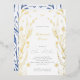 Rehearsal Dinner Foil Invitation with a frame of elegant branches with blue buttercup and leaves. Hand drawn abstract blue delicate flowers leaves on white background. Romantic floral nature background. Abstract nature branches. Spring or summer floral design. Botanical plot. Soft blue botany Rehearsal Dinner Foil Invitation. Blue Buttercup Collection.