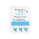 A white background accented by a border of pretty blue butterflies with a band of blue with shaded edges. Customize with all of your birthday information as desired.