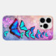 Blue Butterflies on Pink and lavander flowers iPhone Case