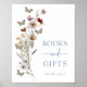 Blue Butterfly Gifts Baby Shower Poster. Guide guests with style using this Boho Butterfly Books and Gifts Poster, designed to complement your elegant baby shower décor. This sign blends rustic charm with modern sophistication, featuring a graceful dusty blue script framed by vintage wildflowers, dried grasses, and soft sage green foliage. A beautiful way to direct guests to the gift table, this poster adds both function and elegance to your celebration. Make every corner of your shower effortlessly stylish!