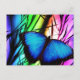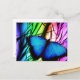 Stunning blue butterfly photo against a digitally enhanced rainbow background