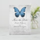Elegant and simple Wedding save the date invite featuring a Blue Butterfly against a grey grunge background. This design is a unique choice for announcing a modern wedding. Easy to customize with your wedding details. Click "Customize It" to find more personalization options.