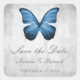 Elegant and simple Wedding Save the Date Stickers featuring a Blue Butterfly against a grey grunge background. This design is a unique choice for announcing a modern wedding. Easy to customize with your wedding details. Click "Customize It" to find more personalization options.