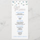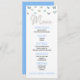 This is a blue butterfly themed bridal shower menu. The design consists of a blue butterfly and silver glitter theme.
