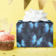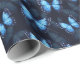This gift-wrapping paper is shown in a lovely blue butterfly print.