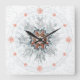 A very detailed illustration of a blue button, scientific name Porpita porpita, by the 1800's artist-biologist Ernst Haeckel. Similar to jellyfish, this marine organism can be found in tropical waters. The clock numerals are represented by drawings of baby starfish. The pastel blue and coral tones create a soft contrast and elegantly match the elegant lines of these beautiful illustrations, that can easily suit the shabby chic interiors of a beach house.