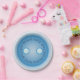 This paper plate is embellished with a custom circular text set against a light blue graphic button design that coordinates with items that feature my buttons and sewing needles pattern.