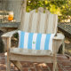 The perfect personalized lumbar pillow for your outdoor space this summer... sky blue cabana stripes with green monogram. Personalize with your own initial. Matching accessories available in our Minimal Monogram Cabana Stripe Collection.