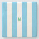 Blue Cabana Stripe & Personalized Green Monogram Stone Coaster