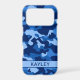 Customize this blue camouflage iPhone 17 pro case with your name in a trendy modern CAP font in dark blue on light blue. It's so modern, girly and trendy! Perfect for any country girl!