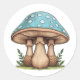 Bring a touch of whimsy to your collection with this delightful sticker featuring a trio of blue cap mushrooms. Great for adding a playful element to your scrapbook, travel journal, or stationery.