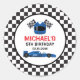 Blue Car Racing Birthday Classic Round Sticker