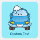 Smiling blue cartoon car with soap bubbles. Custom background colour. Custom text.