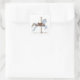 This blue carousel horse sticker design comes with blue and white stripes on the horse and brown saddle and shading.