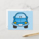 Blue cartoon car postcard