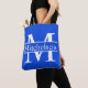 blue cross bar Life Roman font monogrammed all over print tote bag