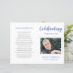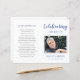 Cet élégant programme de cérémonie du mémorial bleu, avec une photo, est une belle façon de se souvenir d'un être cher pendant la célébration du service de la vie. Une fois que vous les recevez, pliez-les en deux et offrez-les à des invités de cérémonie.