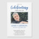 Invite friends and family to share their favourite stories and memories with this elegant blue and white celebration of life magnetic invitation.