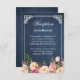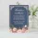 Blue Chalkboard Rustic Floral Wedding Reception Card.
