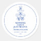 Our Blue Champagne Tower Nothing Fancy, Just Love round stickers feature a clean white background with elegant blue artwork and lettering. The champagne tower illustration in soft blue adds a refined yet playful touch, making these stickers perfect for sealing wedding invitations, decorating favour bags, or adding a personalized accent to your wedding décor. A versatile detail that complements coastal, classic, or modern wedding themes.