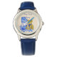 This cheerful still life teddy bear picture is painted in watercolor. The three cute teddies are sitting on a blue and white check picnic cloth. The three little bears are from my own teddy bear collection, the blue bears name is "Charlie bear" the bigger yellow bear is called "small Barbara Bear" and the little teddy.... well...I didn’t have a name for him, but I do remember that he only had one eye. The cute still life teddy bear watercolor painting is a unique picture and definitely stands out. If you're looking for a unique gift for tedd lovers from nought to one hundred then this item will defiantly do the job. This watch can be customized with your own text.
