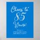 Elegant Blue Cheers to 85 Years 85th Birthday Welcome Poster Afficher cette Elégante Blue Welcome Message Poster à l'entrée de la fête d'anniversaire de jalon spécial. Le texte est entièrement personnalisable afin que vous puissiez personnaliser le message parfait à vos invités. Magasinez notre magasin pour plus de matériel de planification et de décoration de fête!