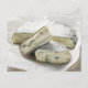 Blue cheese with pieces cut on paper postcard