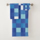 Blue Chequerboard Chequered Pattern Bath Towel Set.