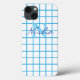 Monogram | Blue White Gingham Plaid Chequered iPhone 13 Case.