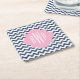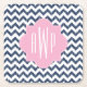 Blue Chevron Ikat Monogram Square Paper Coaster