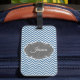 Tag your luggage when you travel with a Blue Chevron Personalized Luggage Tag. Luggage tag design features a blue chevron background and an ornate grey tag to personalize with your name and monogram. Additional items available with this design as well. Please contact me directly for assistance with personalization.