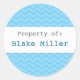 Blue chevron personalized sticker, perfect for labelling books and school supplies!