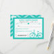Blue Chevron Trendy Bicycle Hearts Wedding Reception RSVP Card. A beautiful and modern trendy wedding reception rsvp card featuring a bicycle and hearts in poster style layout on the front. The back is various blues in a chevron pattern and a white heart in upper left corner, while a white bicycle sits in the bottom right corner. modern, trendy and fun!