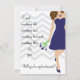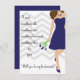 A modern design with a bridesmaid wearing a short blue gown or dress. She's holding a bouquet of tulip flowers. She's looking stylish as she wears a matching necklace, high heels and her hair rests freely on her shoulders. The background is modern chevron zigzag stripes in a subtle grey. The text reads "Something old, something new, something borrowed, something blue and you. Will you be my bridesmaid?" This card is for asking someone to be a bridesmaid, flower girl, maid of honour or other member of the bridal party in your wedding. You can add a personal message to the back by clicking on the Customize It button. This design is available in a variety of colours, as well as skin tones and hair colour. If you don't find what you're looking for just message me.