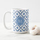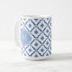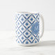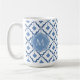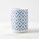 This versatile design is adapted from a Chinese ceramic pattern. It features a repeating pattern of scalloped diamond shapes in a colour combination of dusty blue, dark blue and white. Personalize this design with your monogram initial. It makes a wonderful gift or a nice addition to your coffee mug collection.