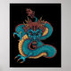 blue chinese dragon poster