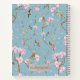 This elegantly designed spiral notebook features a timeless baby blue Chinoiserie pattern of delicate flowering branches and birds where delicate birds appear to fly toward a central, ornate "MEMORANDA" label. This artistic flow is grounded by a realistic textured finish and a practical silver spiral binding that elevates the humble notebook into a timeless archival piece.