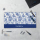 This blue chinoiserie monogram name desk mat features elegant floral vases in classic blue and white with a bold centered name in a trending font. Perfect for home styling, this chinoiserie monogram design adds timeless charm and personalized sophistication.