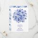 Announce your day with blue chinoiserie florals, featuring an all over floral pattern of watercolor floral artwork in a classic blue and white porcelain inspired style. The front showcases an indigo blossom bouquet above your wording, paired with elegant serif typography and a script save the date for a refined look. This romantic wedding stationery design is ideal for couples who love blue floral bouquet details and timeless botanical style.