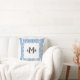 Blue Chinoiserie Wide Greek Key Border Monogram Throw Pillow